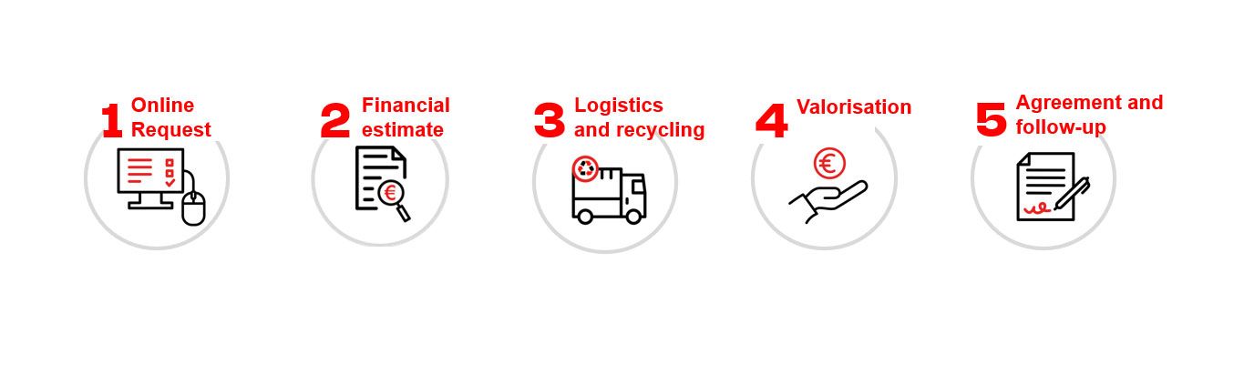 - A fully digital, turnkey cable recycling solution: An integrated service covering the entire value chain through five simple steps.