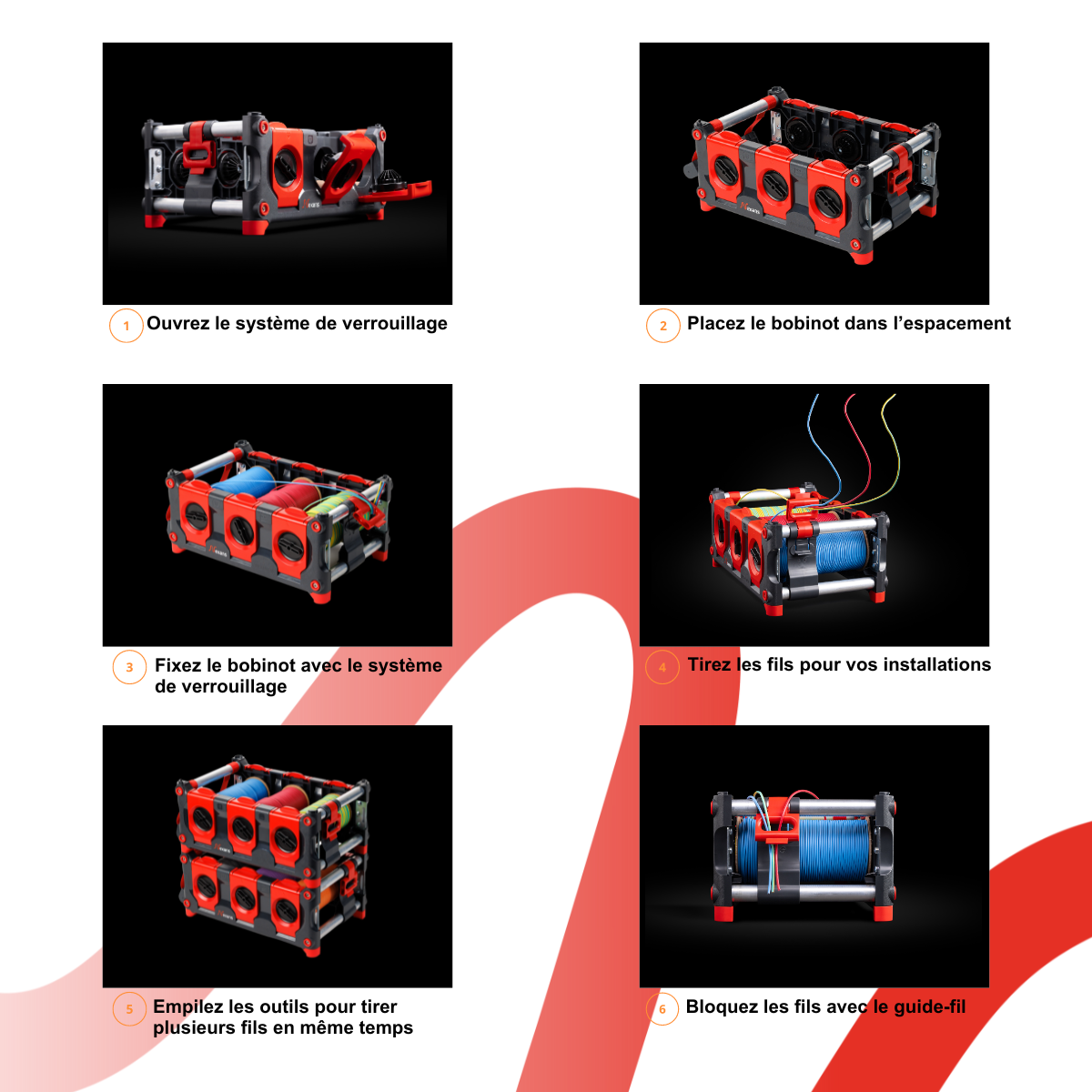 Le nouvel outil, combiné à un format de bobines résolument innovant, offre de nombreux avantages. Il facilite encore davantage le transport et permet de tirer jusqu'à six fils simultanément. Cette solution professionnelle optimise non seulement la sécurité sur les chantiers, mais réduit également les postures inconfortables, améliorant ainsi les conditions de travail.