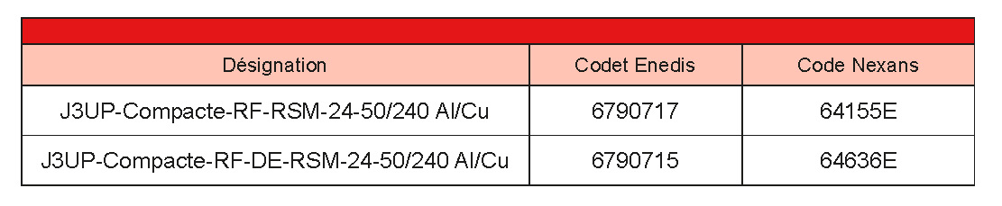 La J3UP Compacte est prévue pour raccorder des câbles à isolant synthétique de tension maximale 12/20(24) kV conformes aux normes NF C33-226,